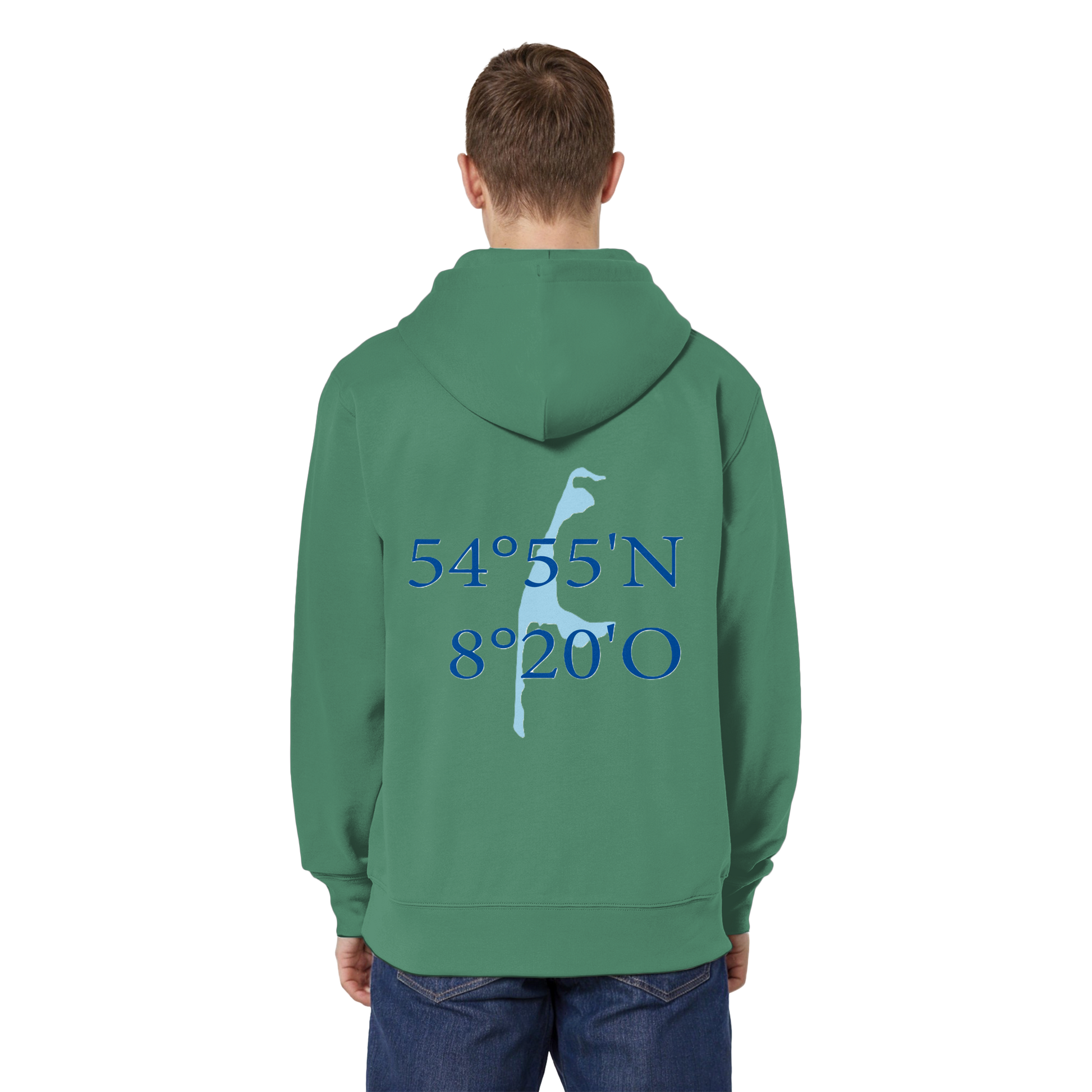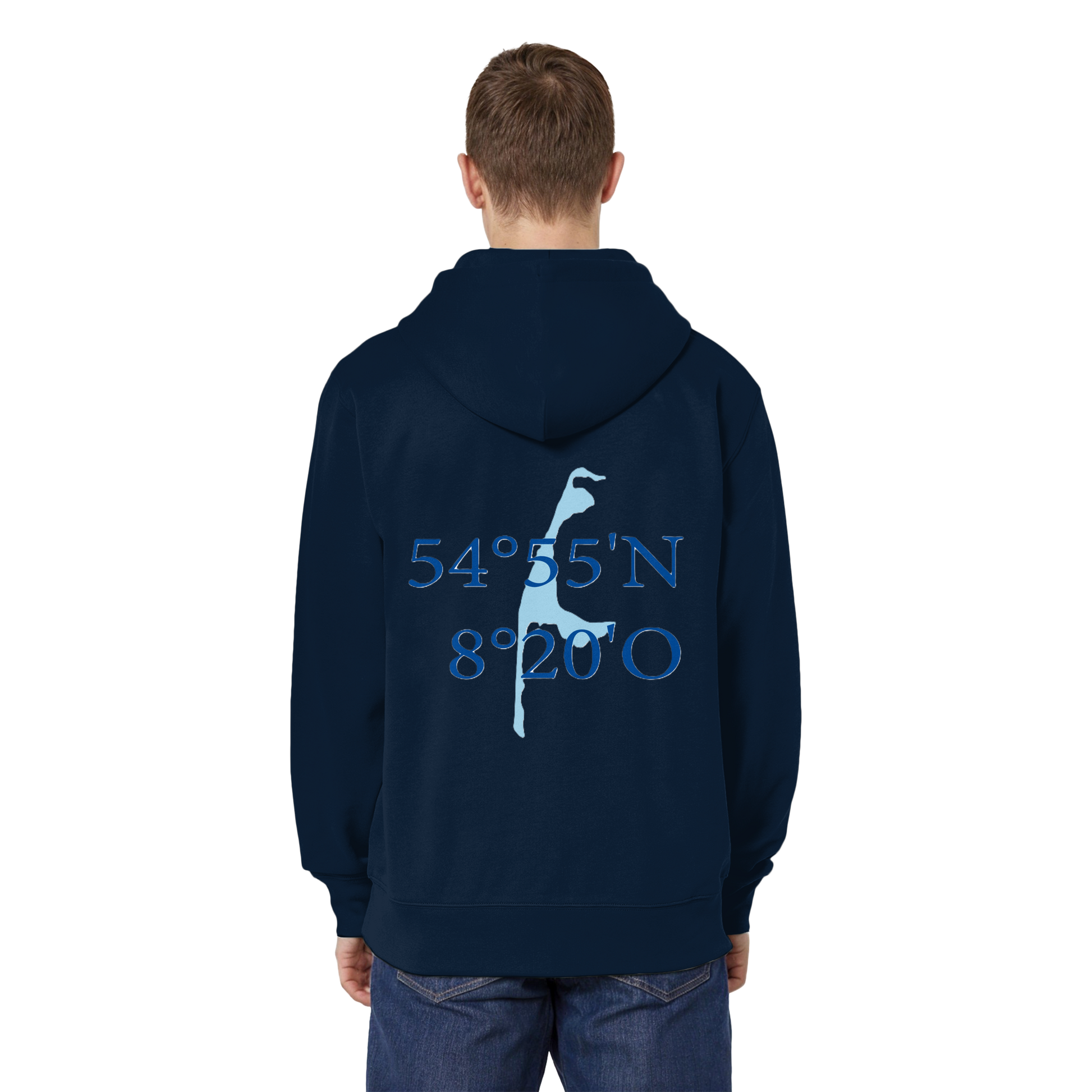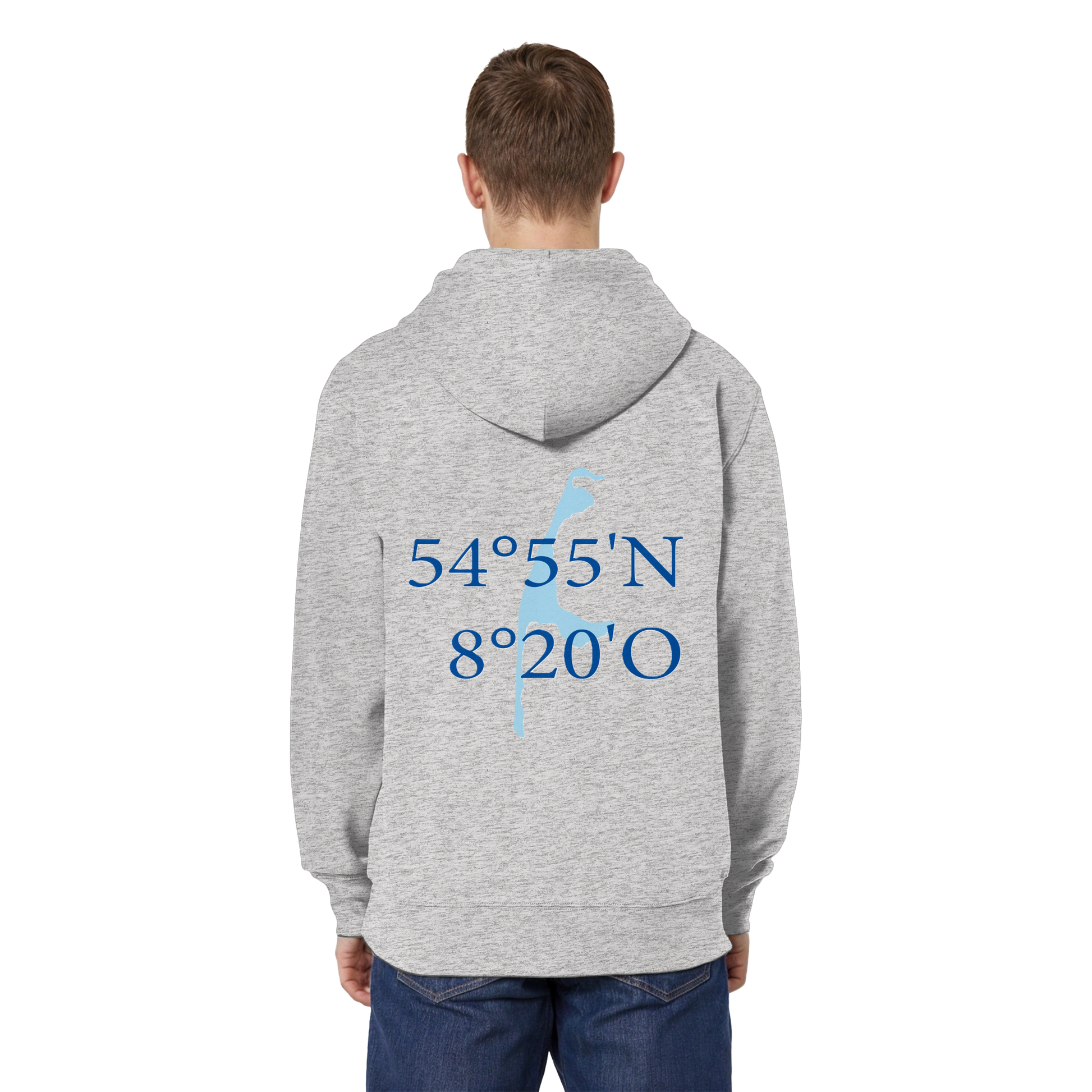 Der "Deine Koordinaten_blau_vorne" Hoodie verbindet Stil mit Bedeutung. Ein einzigartiges Design, das Koordinaten in einem eleganten Blau darstellt, lässt Dein Herz höher schlagen und erinnert Dich an besondere Momente.