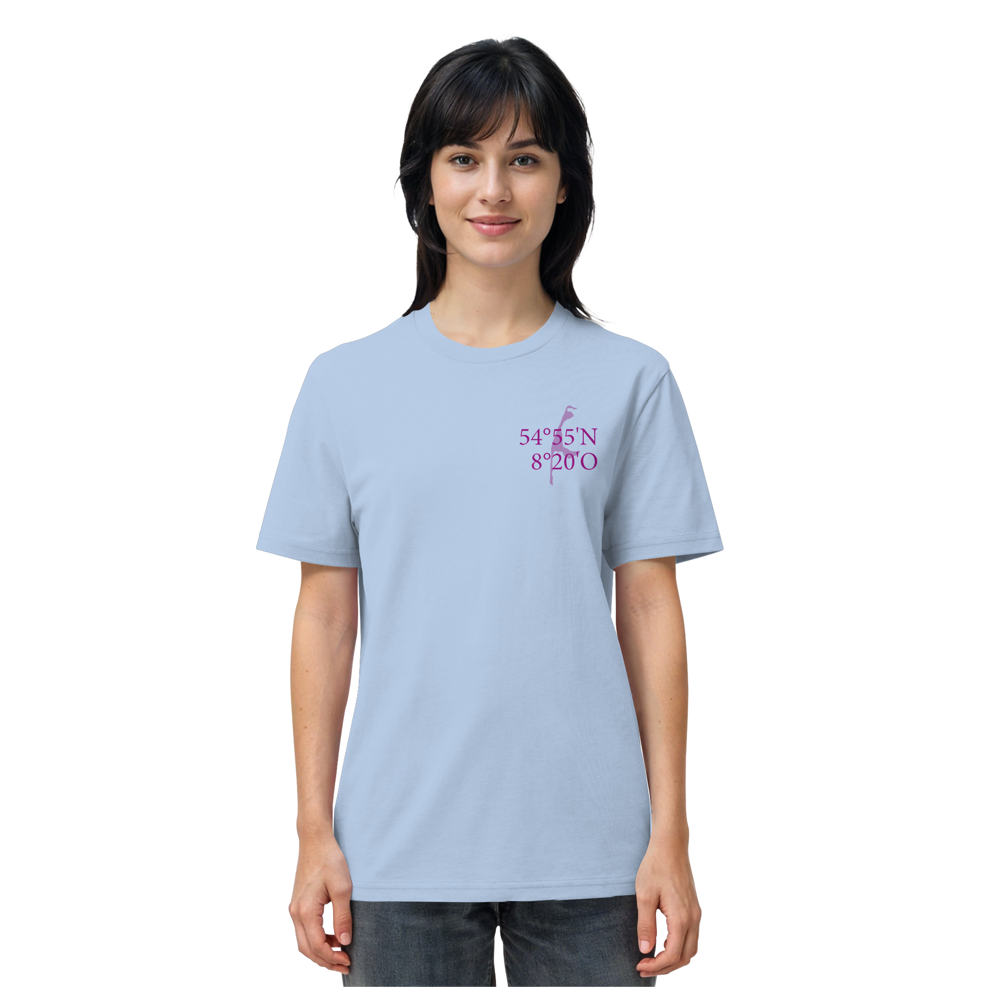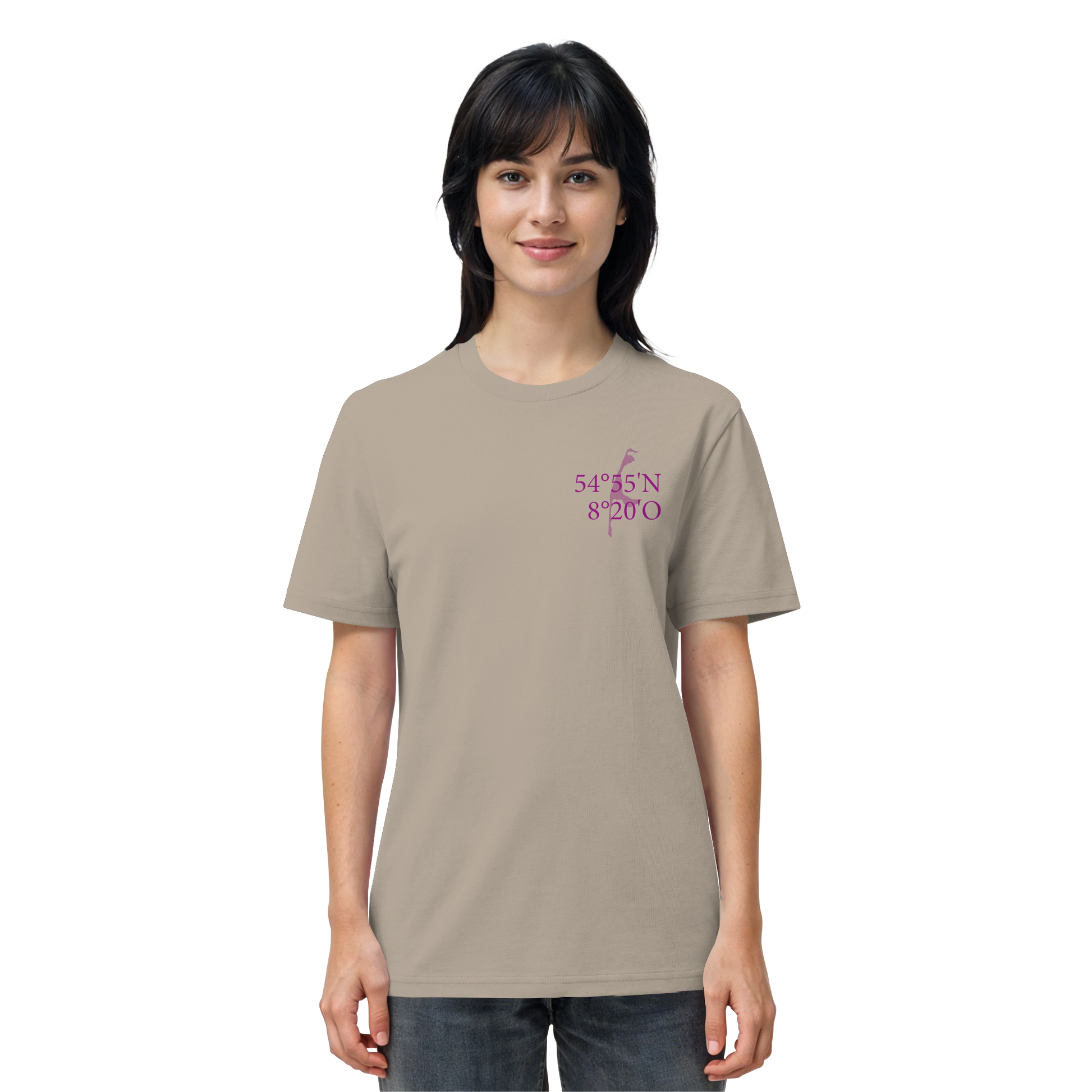 Das "Deine Koordinaten - Basic Shirt" verbindet Stil mit Bedeutung. Die markanten Koordinaten und der künstlerische Umriss in kräftigem Violett erzählen von Abenteuern und Erinnerungen.