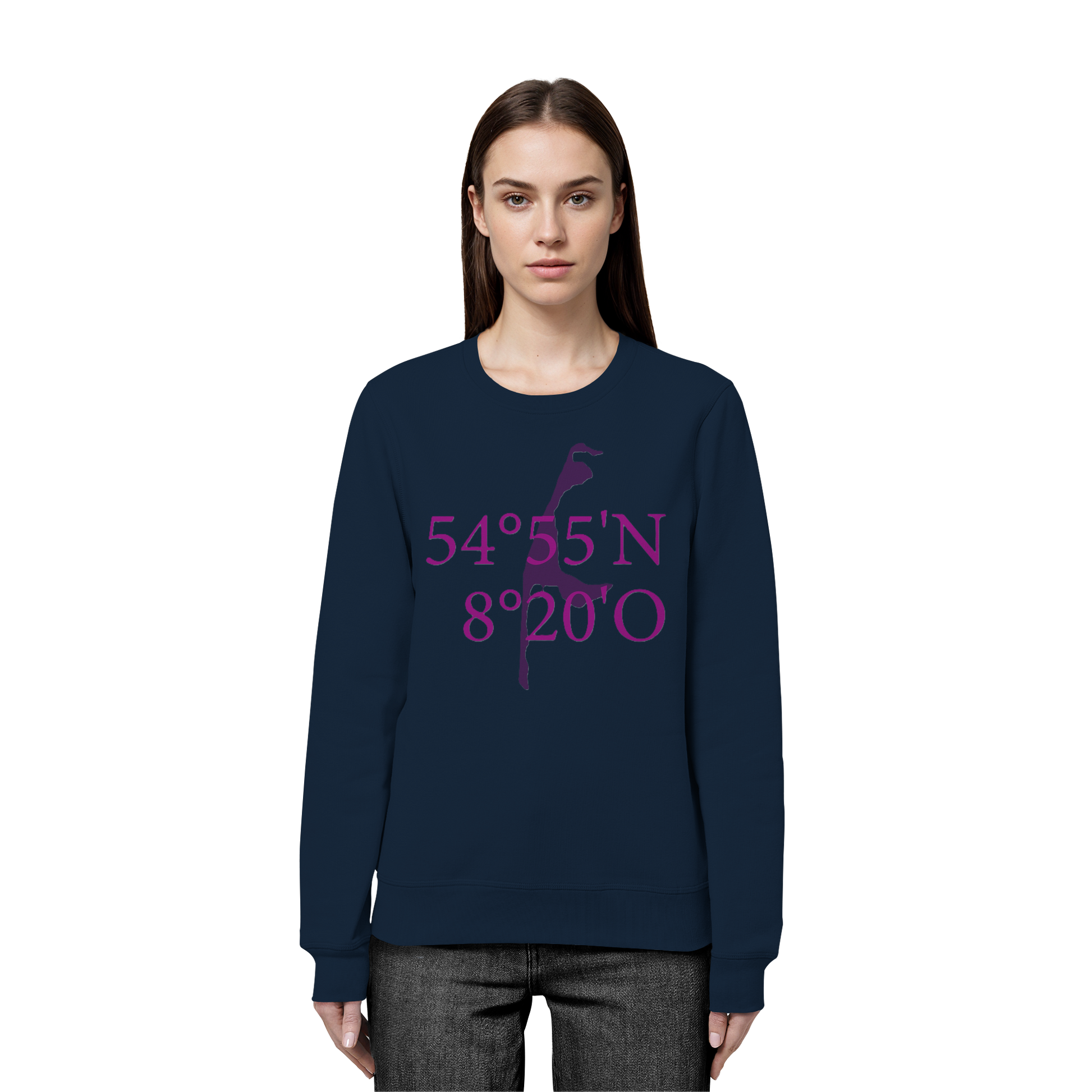 Mit dem „Deine Koordinaten_lila_vorne“ Sweatshirt trägst du nicht nur ein Kleidungsstück, sondern ein Stück deiner Geschichte. Die auffällige lila Grafik mit Koordinaten erzählt von Orten, die dir am Herzen liegen.