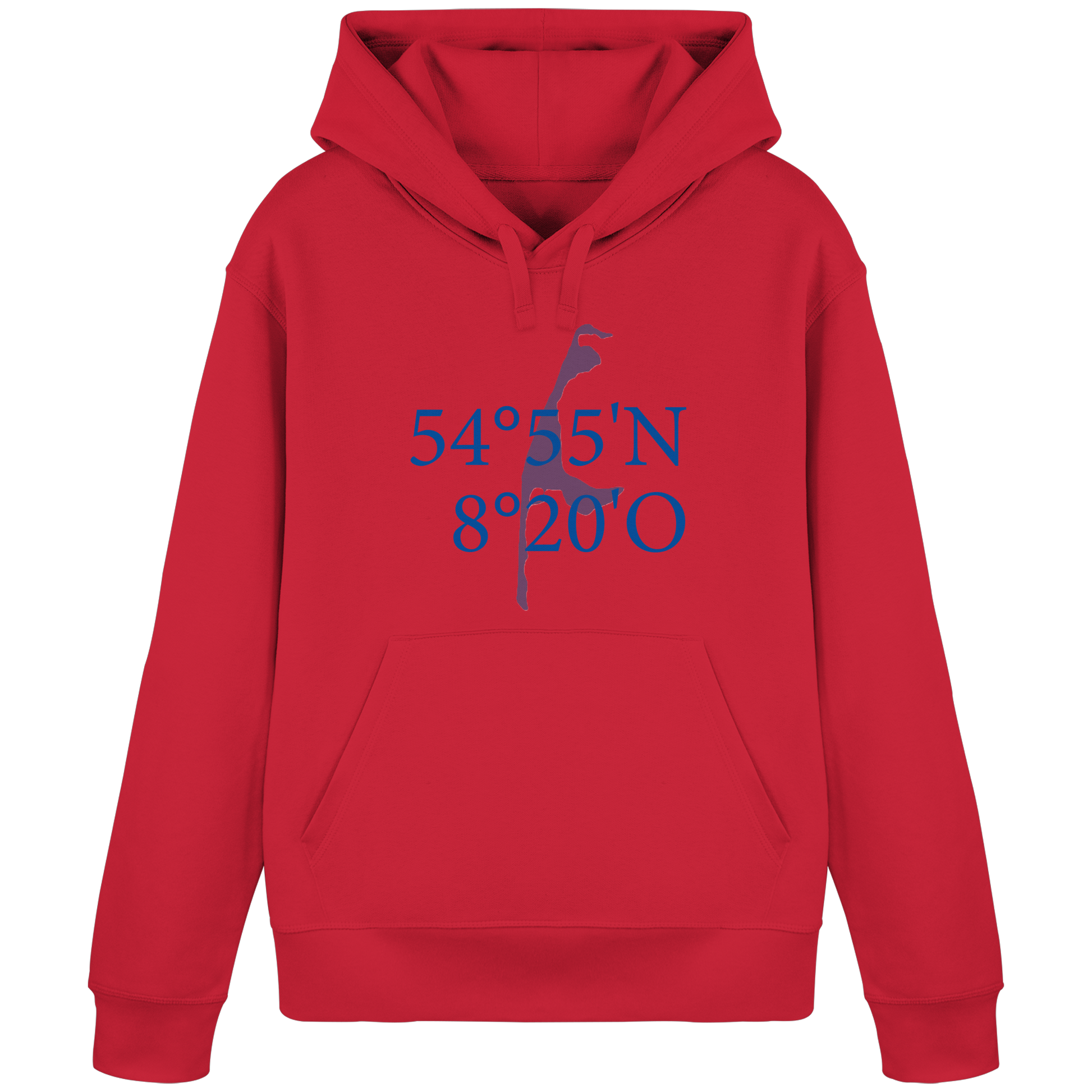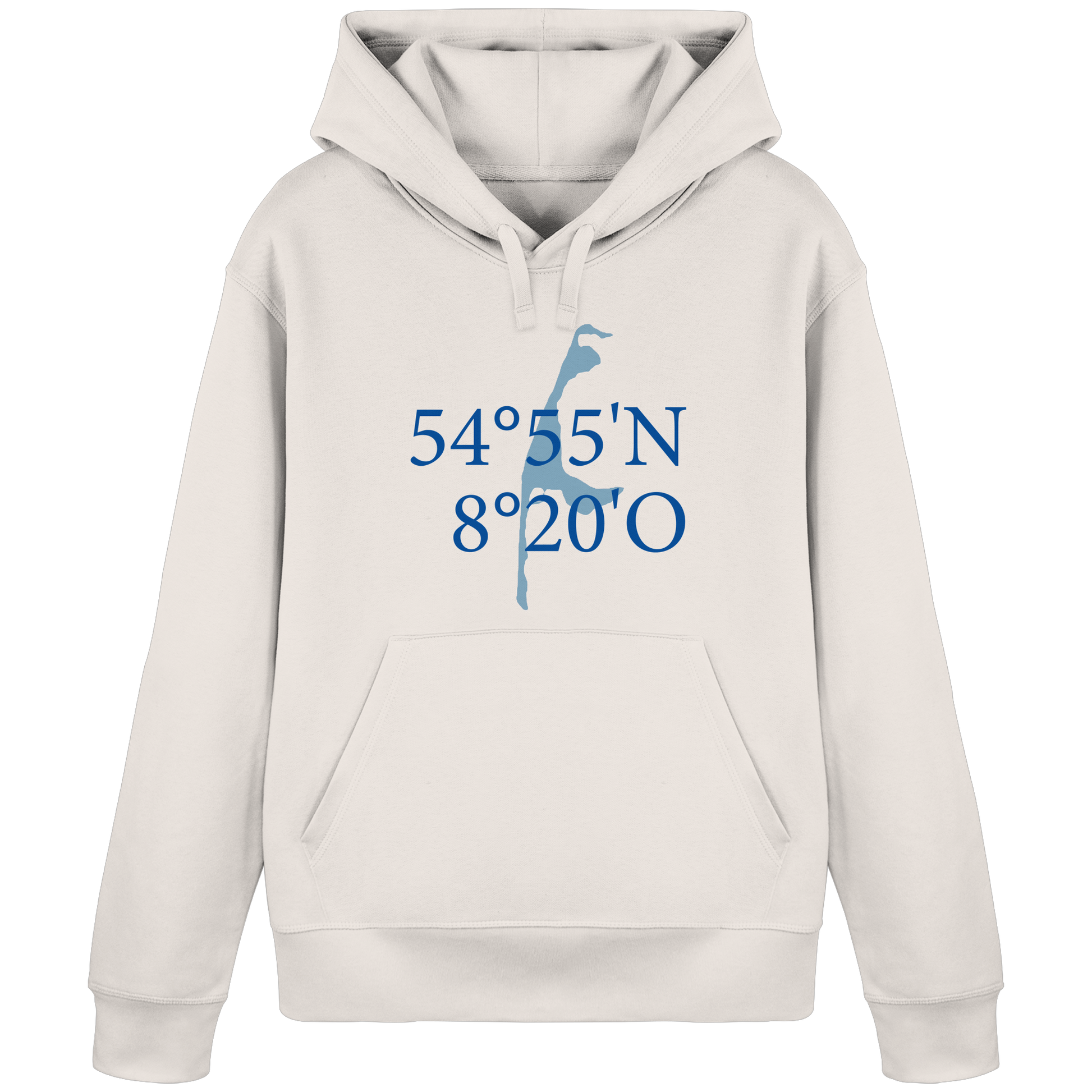 Unsere Heimathafen-Kollektion holt das Inselfeeling direkt zu dir nach Hause. Hoodie, Tasse und Mütze tragen die Koordinaten des Ortes, an dem Wind, Wellen und Weite verschmelzen – 54°55'N, 8°20'O.