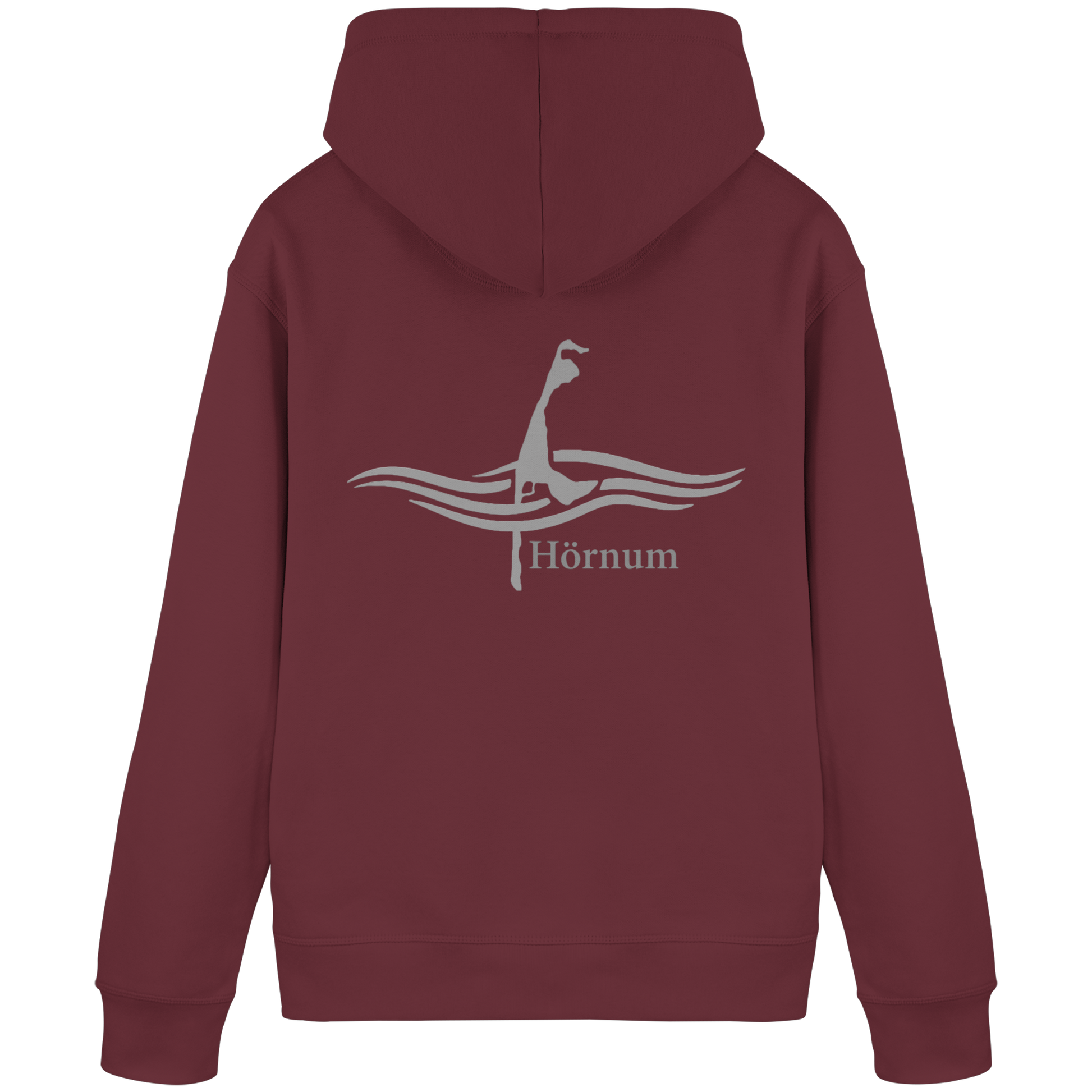 Das dezente Hörnum-Logo und die sanften Wellenmuster symbolisieren die Verbindung zum Meer. Der Hoodie ist in natürlichen Farben gehalten, die ein Gefühl von Harmonie und Frische vermitteln.