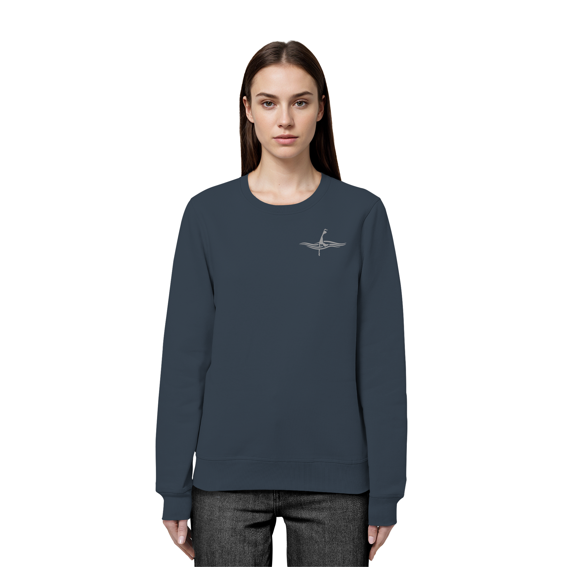 Das Sweatshirt zeigt elegante Wellenmotive, die das Gefühl der Küstenbrise einfangen. Ein zentrales Symbol erinnert an Freiheit und Abenteuer.