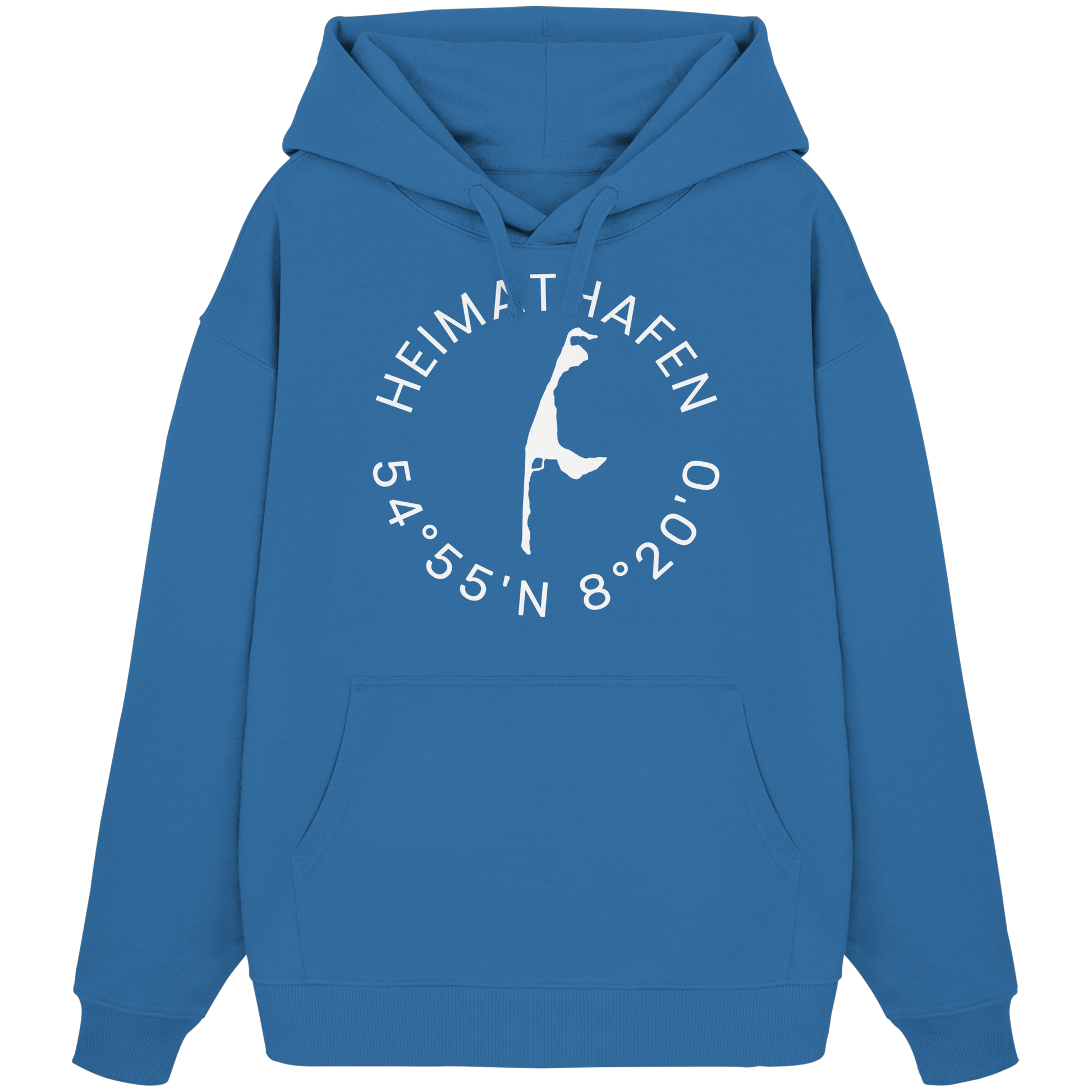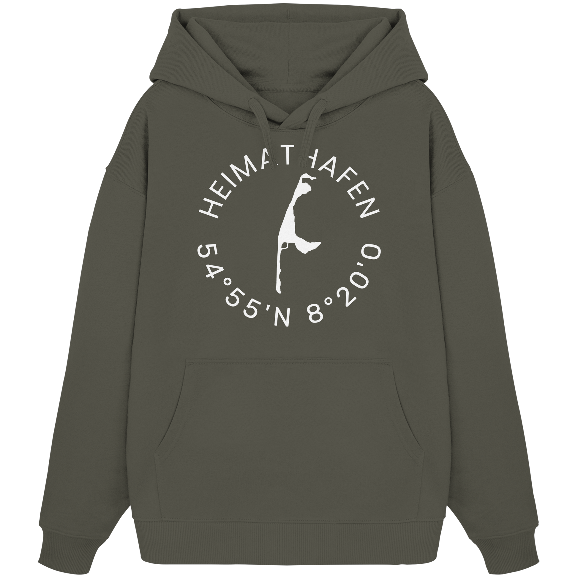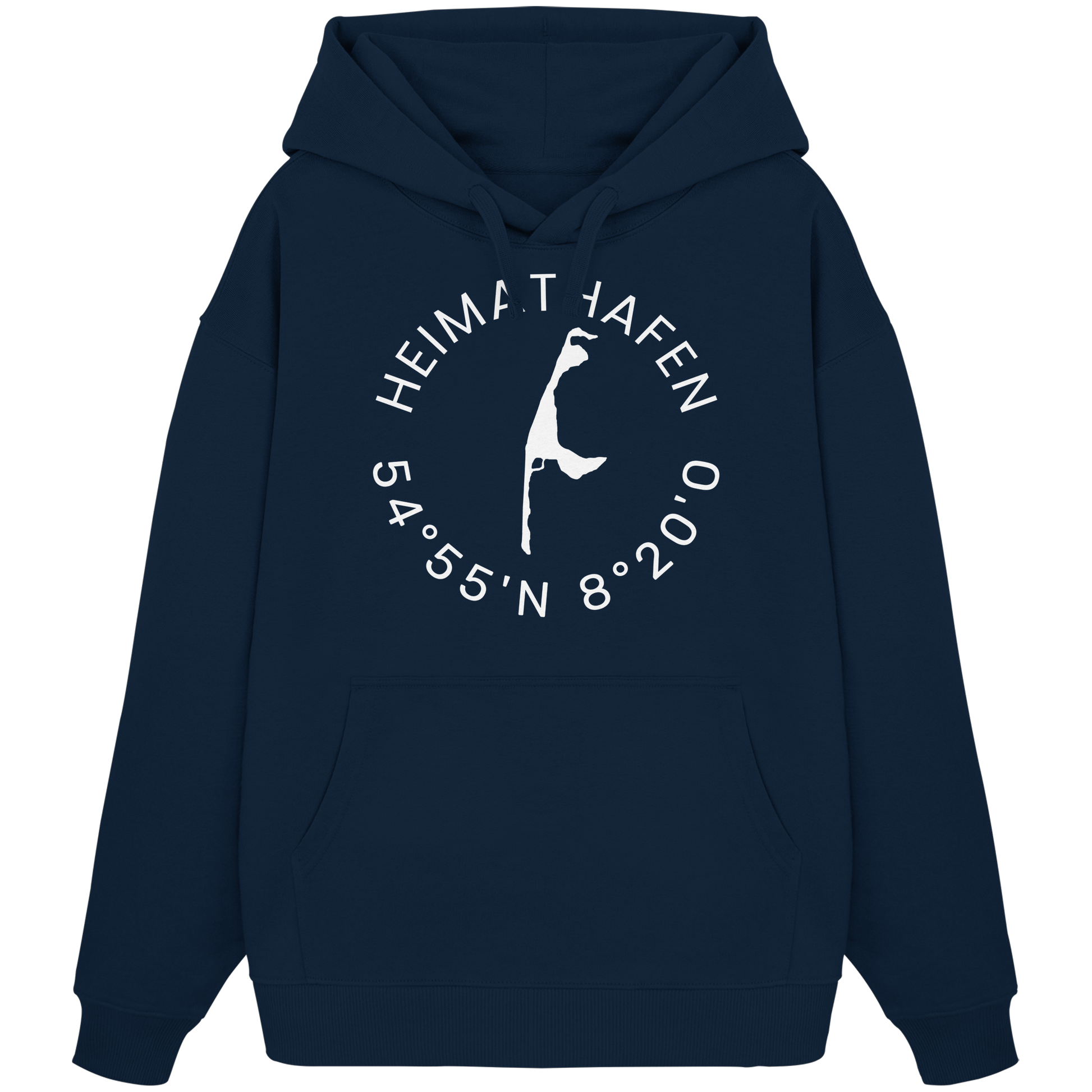 Der Hoodie besticht durch sein minimalistisches Design, geprägt durch das subtile Heimathafen-Motiv und die Koordinaten, die Ihre Sehnsucht nach Meer wecken.